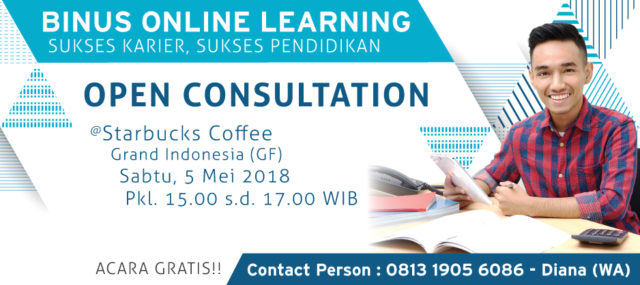 Open Consultation BINUS Online LearningShare toOpen Consultation BINUS Online LearningShare toShare toRelated Posts You Might LikeOpen Consultation BINUS Online Learning24 April 2018Open Consultation BINUS Online Learning24 November 2017Open Consultation BINUS Online Learning12 Oktober 2018