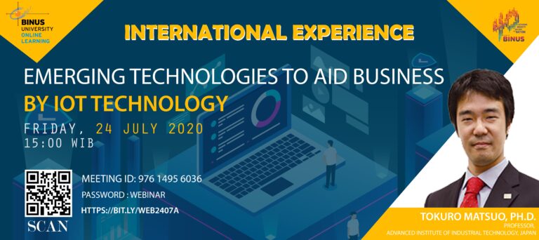 Emerging Technologies to Aid Business by IOT Technology22 Juli 2020Emerging Technologies to Aid Business by IOT Technology Jumat, 24 Juli 2020 15.00 WIB bit.ly/WEB2407A