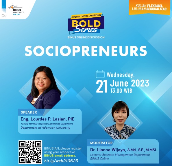 Let’s join our BOLD Series – International Experience: “Sociopreneurs” with Eng. Lourdes P. Lasian, PIE