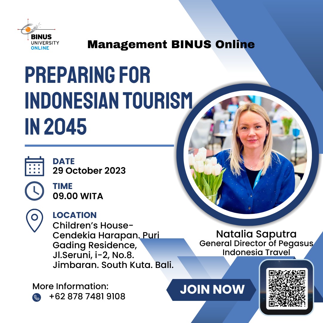 Ibu Natalia Saputra, selaku General Director of Pegasus Indonesia Travel, dengan judul “Preparing Indonesian Tourism for 2045”