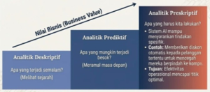 Sebagai penguatan dari konsep Integrating AI and Big Data Analytics for UMKM Indonesia, Dr. Faisal Binsar juga menjelaskan tahapan nilai bisnis (business value) dalam pemanfaatan data melalui tiga level analitik, yaitu analitik deskriptif, analitik prediktif, dan analitik preskriptif. Pada tahap analitik deskriptif, UMKM berfokus pada pemahaman apa yang telah terjadi di masa lalu, seperti tren penjualan, pola transaksi pelanggan, dan performa operasional. Tahap ini membantu pelaku UMKM melihat kondisi bisnis secara historis sebagai dasar evaluasi dan pembelajaran. Selanjutnya, pada level analitik prediktif, data historis tersebut diolah menggunakan teknik statistik dan kecerdasan buatan untuk menjawab pertanyaan apa yang mungkin terjadi di masa depan. Melalui pendekatan ini, UMKM dapat memprediksi permintaan pasar, perilaku konsumen, maupun potensi risiko bisnis, sehingga mampu melakukan perencanaan yang lebih proaktif dan antisipatif. Analitik prediktif menjadi jembatan penting bagi UMKM untuk tidak hanya bereaksi terhadap perubahan, tetapi mulai mengantisipasi dinamika pasar. Tahap tertinggi adalah analitik preskriptif, di mana sistem berbasis AI tidak hanya memprediksi, tetapi juga memberikan rekomendasi tindakan yang paling optimal. Pada level ini, teknologi mampu menyarankan keputusan spesifik, seperti pemberian diskon otomatis kepada segmen pelanggan tertentu untuk mencegah customer churn, pengaturan stok yang optimal, atau penyesuaian strategi harga dan promosi. Analitik preskriptif berorientasi pada peningkatan efektivitas dan efisiensi operasional, sehingga UMKM dapat mencapai kinerja bisnis yang lebih optimal dan berkelanjutan. Perlunya memahami dan menerapkan tahapan analitik ini secara bertahap, UMKM Indonesia dapat meningkatkan nilai bisnis dari data yang dimiliki, sekaligus memperkuat proses pengambilan keputusan yang lebih cerdas, berbasis bukti, dan selaras dengan tujuan keberlanjutan usaha.