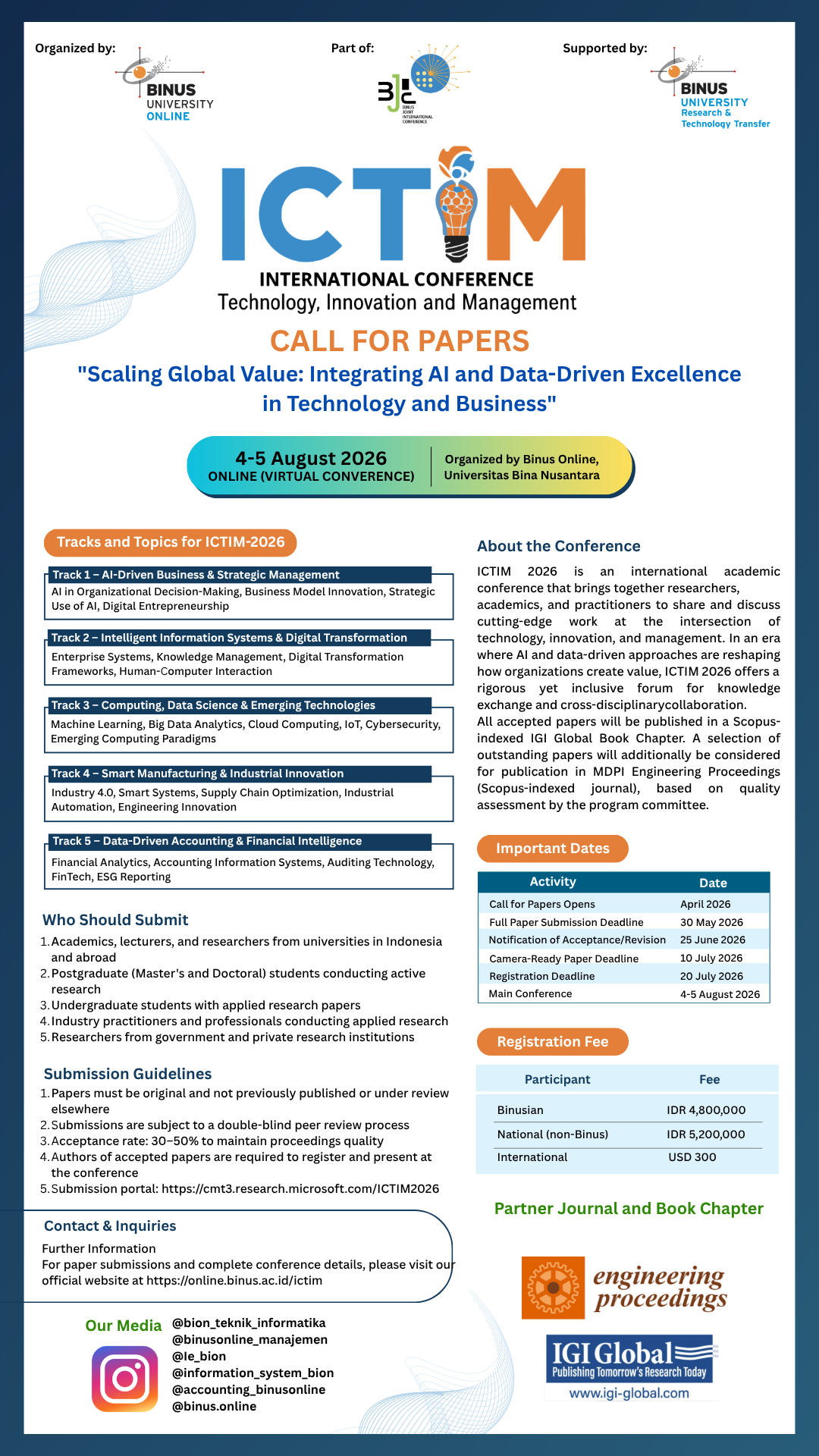 It is against this backdrop that the International Conference on Technology, Innovation, and Management (ICTIM) 2026 is organized as an inclusive, relevant, and impact-oriented international academic forum, under the theme: