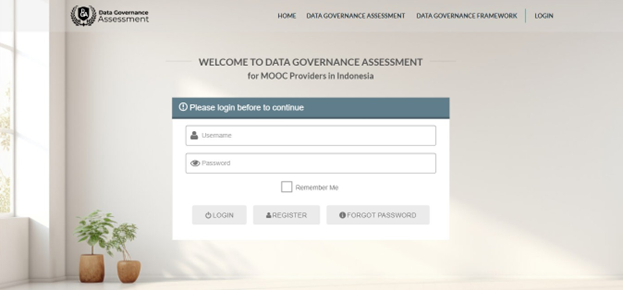 Currently, the MOOC management application is used by eight active MOOC administrators in Indonesia, including MOOC administrators from educational institutions, MOOC administrators from state-owned enterprises, and MOOC administrators from private companies. With the MOOC data governance assessment application, MOOC administrators can consistently monitor and effectively control all data entered and displayed by MOOC administrators, especially in Indonesia.
