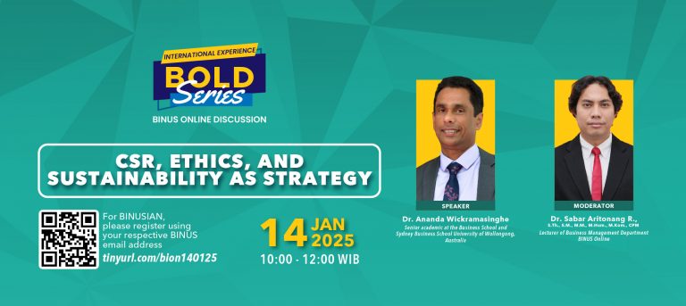 BOLD Series International Experience : CSR, ETHICS, AND SUSTAINABILITY AS STRATEGY